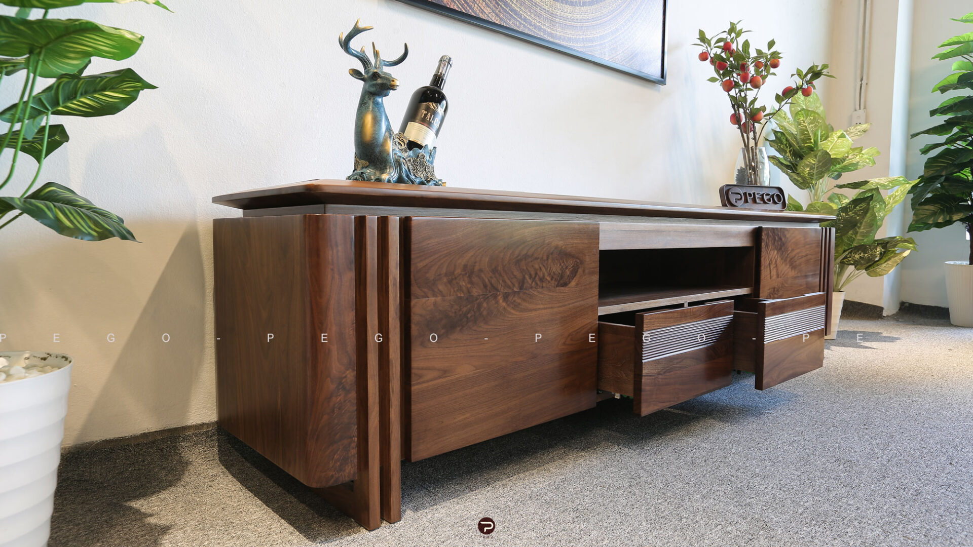 – Vật liệu hoàn thiện: Sản phẩm được làm từ Gỗ óc chó nhập khẩu xẻ sấy nguyên kiện Bắc Mỹ, chống mối mọt, độ ổn định cao, ít co ngót.